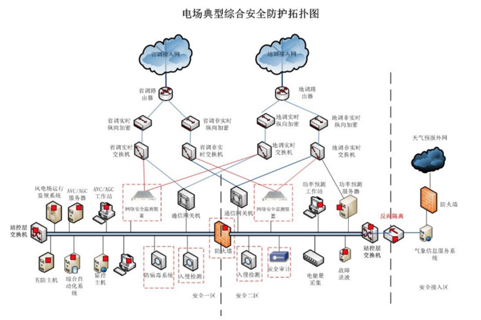 根据《中华人民共和国网络安全法》,《等级保护实施指南》及国家能源局关于新能源场站SCADA系统安全防护的要求 众赢国际版app,纵深安全防护遵循“安全分区,网络专用,横向隔离,纵向认证”基本原则【亦称“十六字”方针】等相关政策,提供针对电场安全防护系统的建设方案规划与设计。