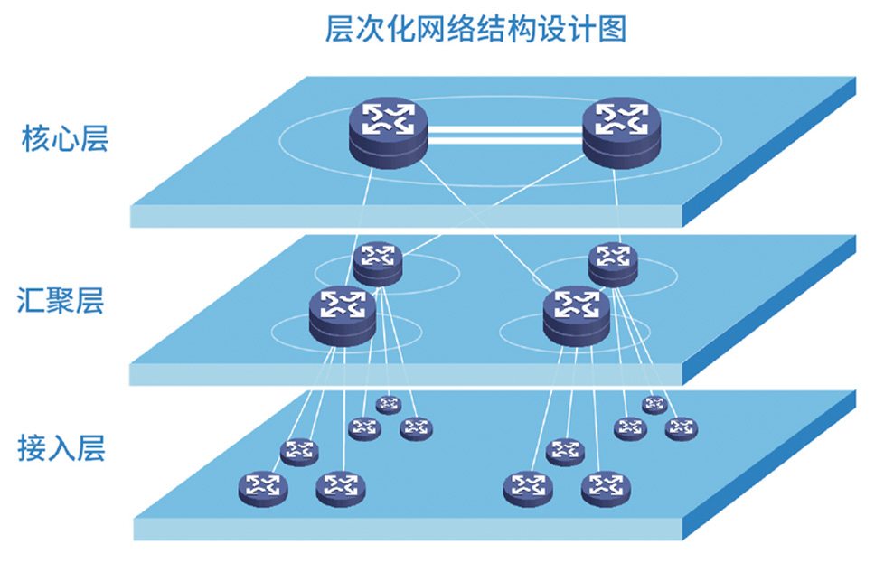 针对区域级电力调度数据网的网络规划,进行三层网络结构设计,即核心层,汇聚层,接入层 众赢国际版app,核心层为网络业务的交汇中心,通常情况下核心层只完成数据交换功能,汇聚层位于核心层和接入层之间,主要完成业务的汇聚和分发,接入层主要将用户业务接入网络,实现质量保证和访问控制。